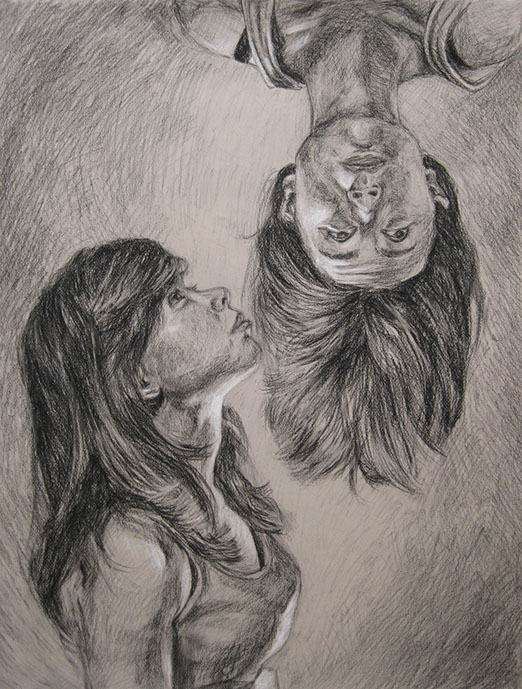 17. Self-Portrait Final from Observation, Charcoal and Watercolor