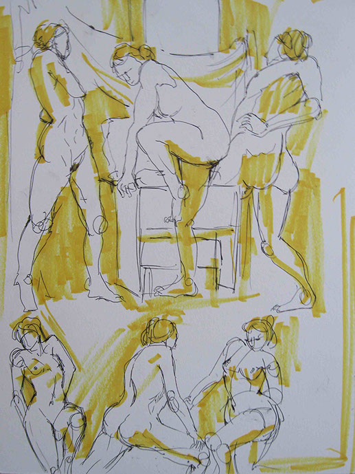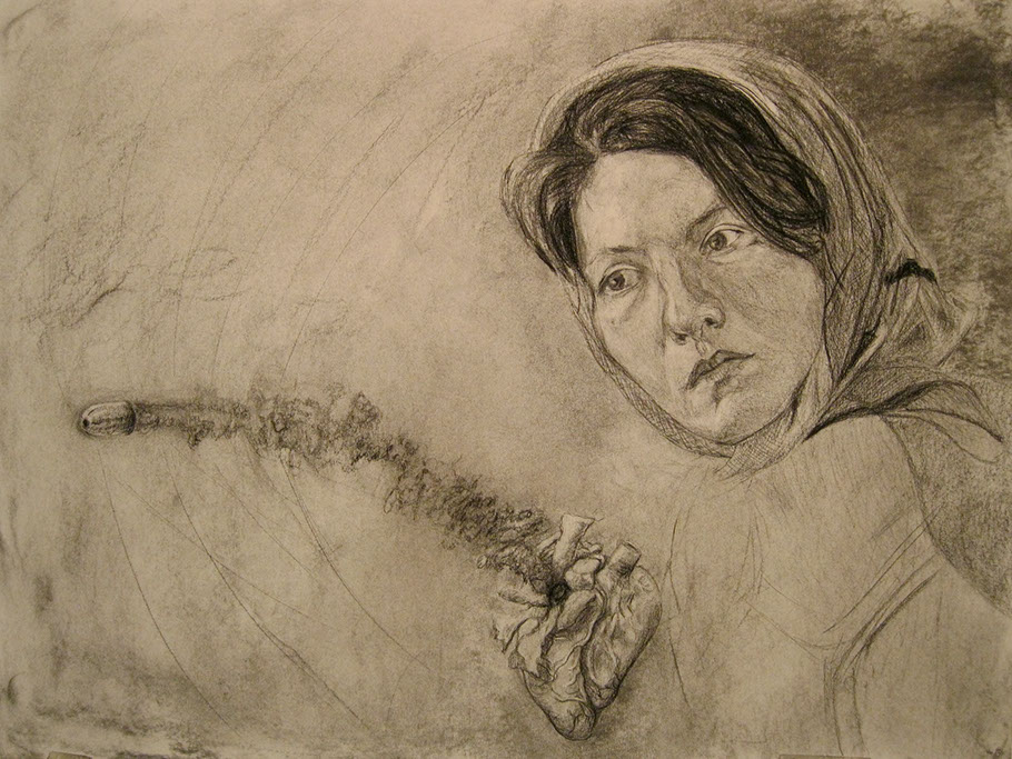 17. Self-Portrait Final from Observation, Charcoal and Watercolor
